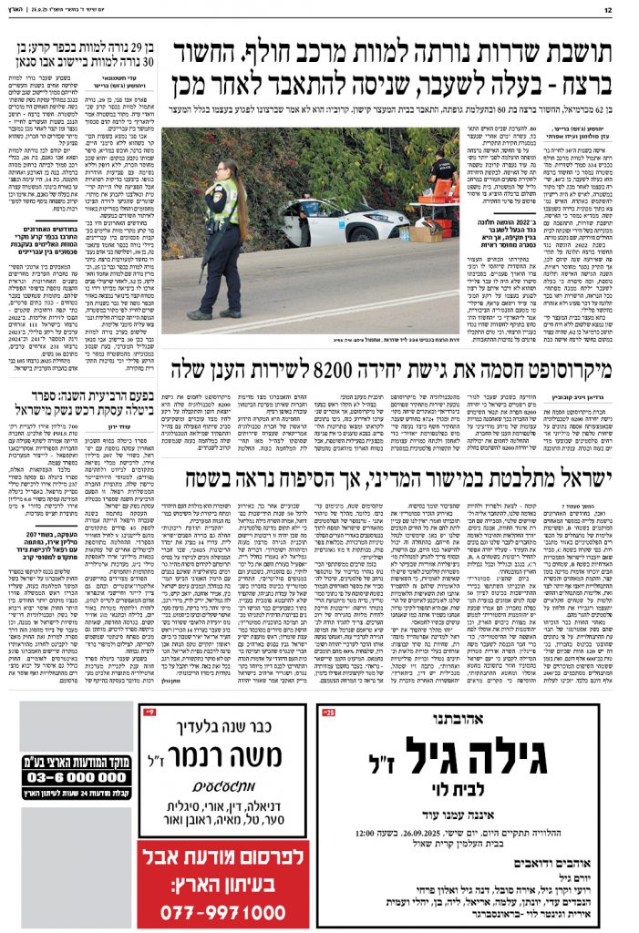 הלוויה תיערך ביום חמישי 25.9.25 בשעה 11:00