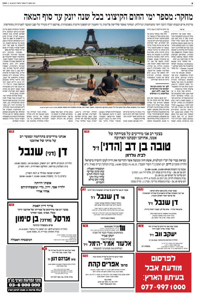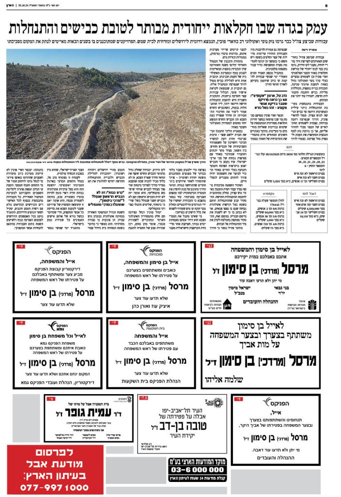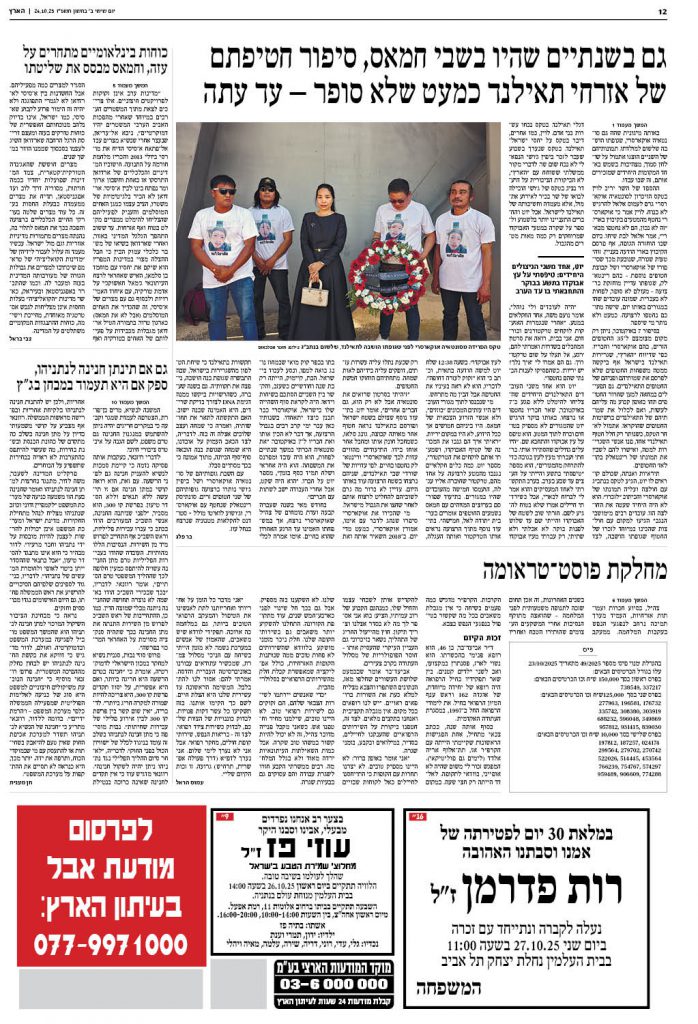 ארכיון מודעות אבל כפי שפורסמו בעיתון הארץ