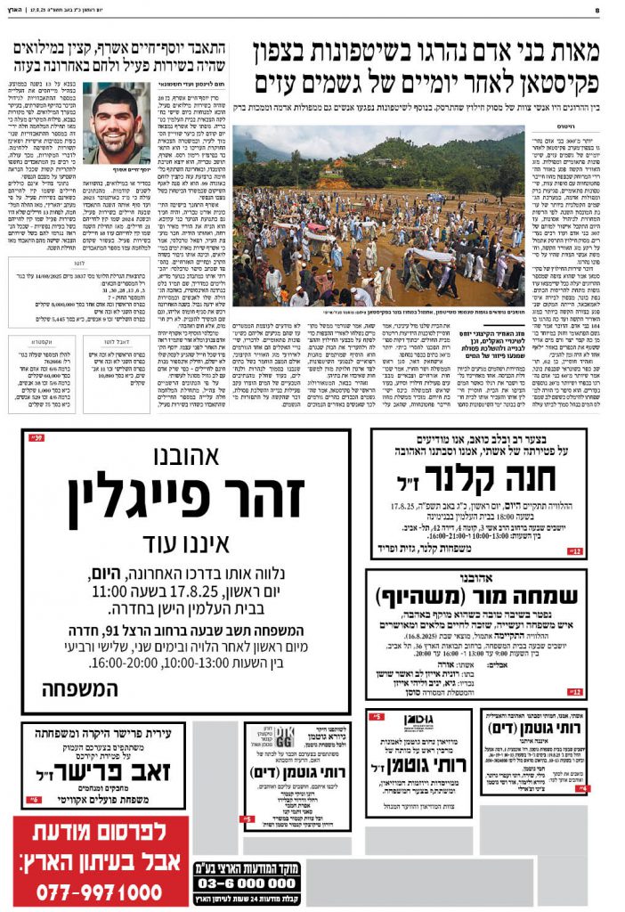 ארכיון מודעות אבל כפי שפורסמו בעיתון הארץ