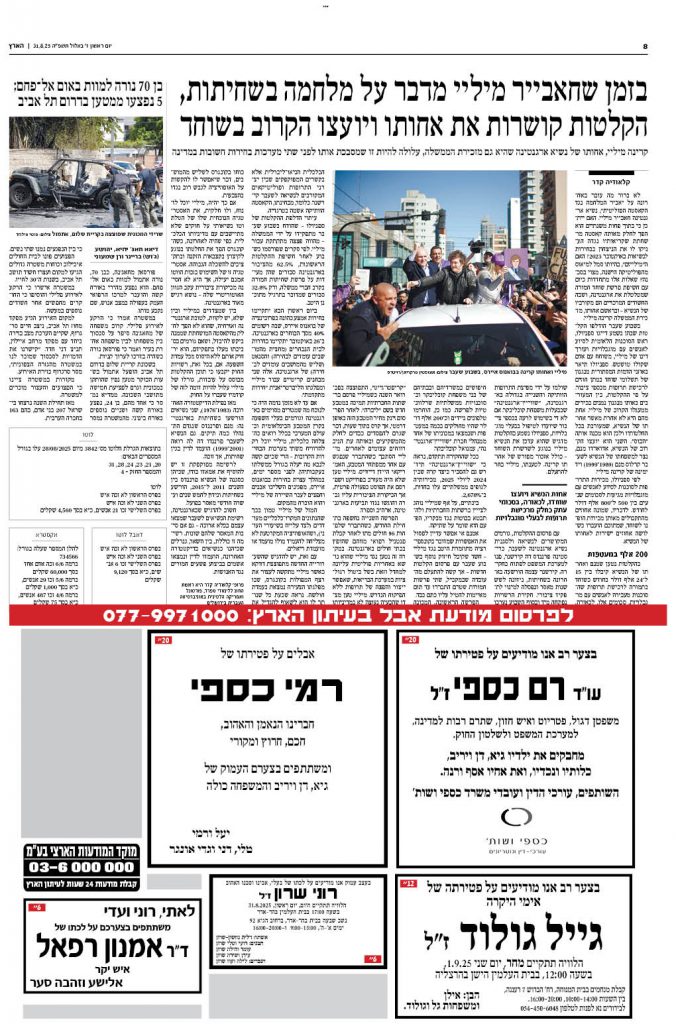 פרסום מודעת אבל בעיתון הארץ – הדרך הבטוחה והמהירה לחשיפה גבוהה בקרב קהל יעד איכותי