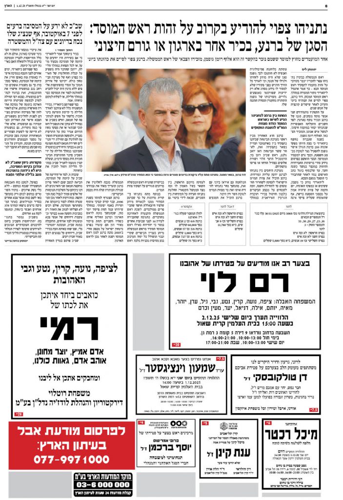 פרסום מודעות אבל בעיתון הארץ