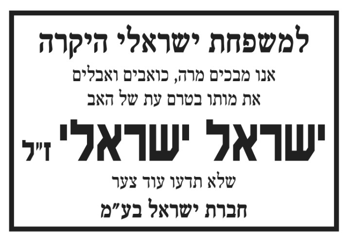 מחלקת מודעות אבל עומדת לרשותכם בכל דרך שנוחה לכם ובכל שעה.