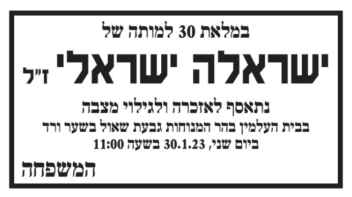 דוגמה מודעת עדכון על אזכרה / שלושים