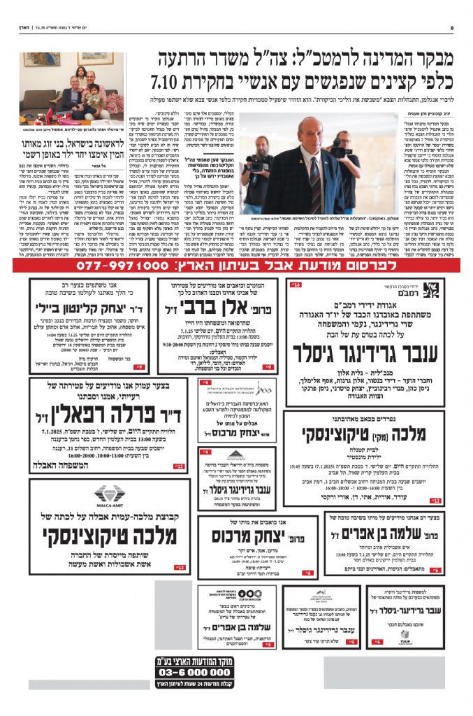 פרסום מודעות אבל בעיתון הארץ